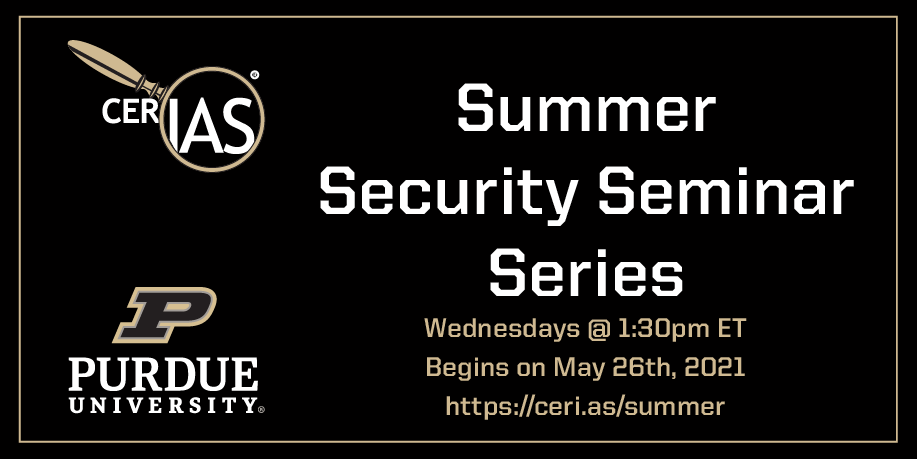 Interested in giving a technical talk at a future CERIAS Security Seminar? Contact us at info@cerias.purdue.edu